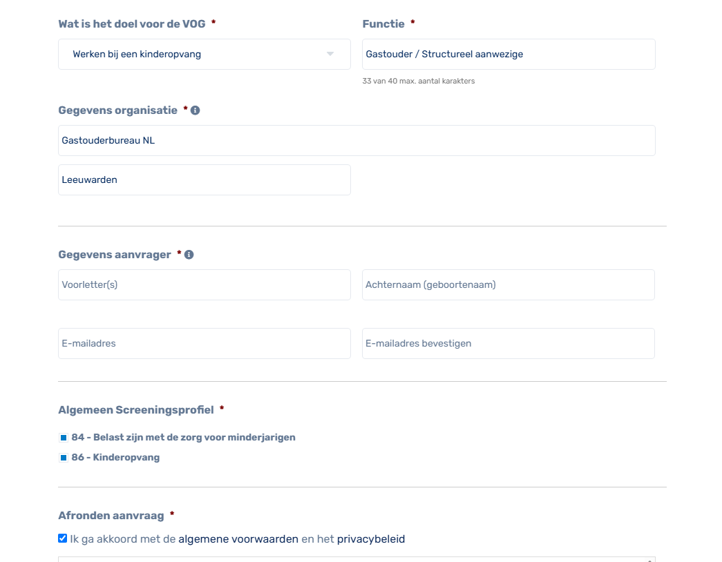 Klik HIER om de VOG Kinderopvang aanvraag in te vullen.